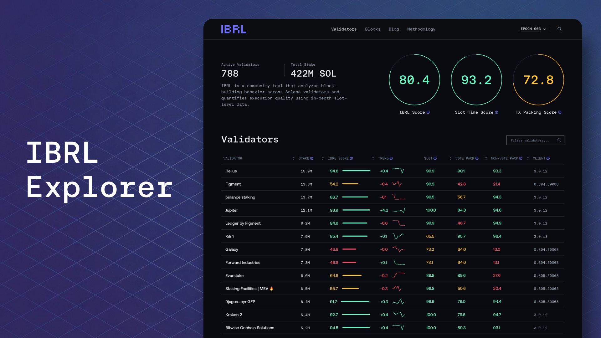 IBRL.wtf exists to make validator behavior measurable, transparent, and auditable. It aims to give validators, stakers, and applications a shared source of truth for what actually happens at the block production layer at a level of detail never seen before.
